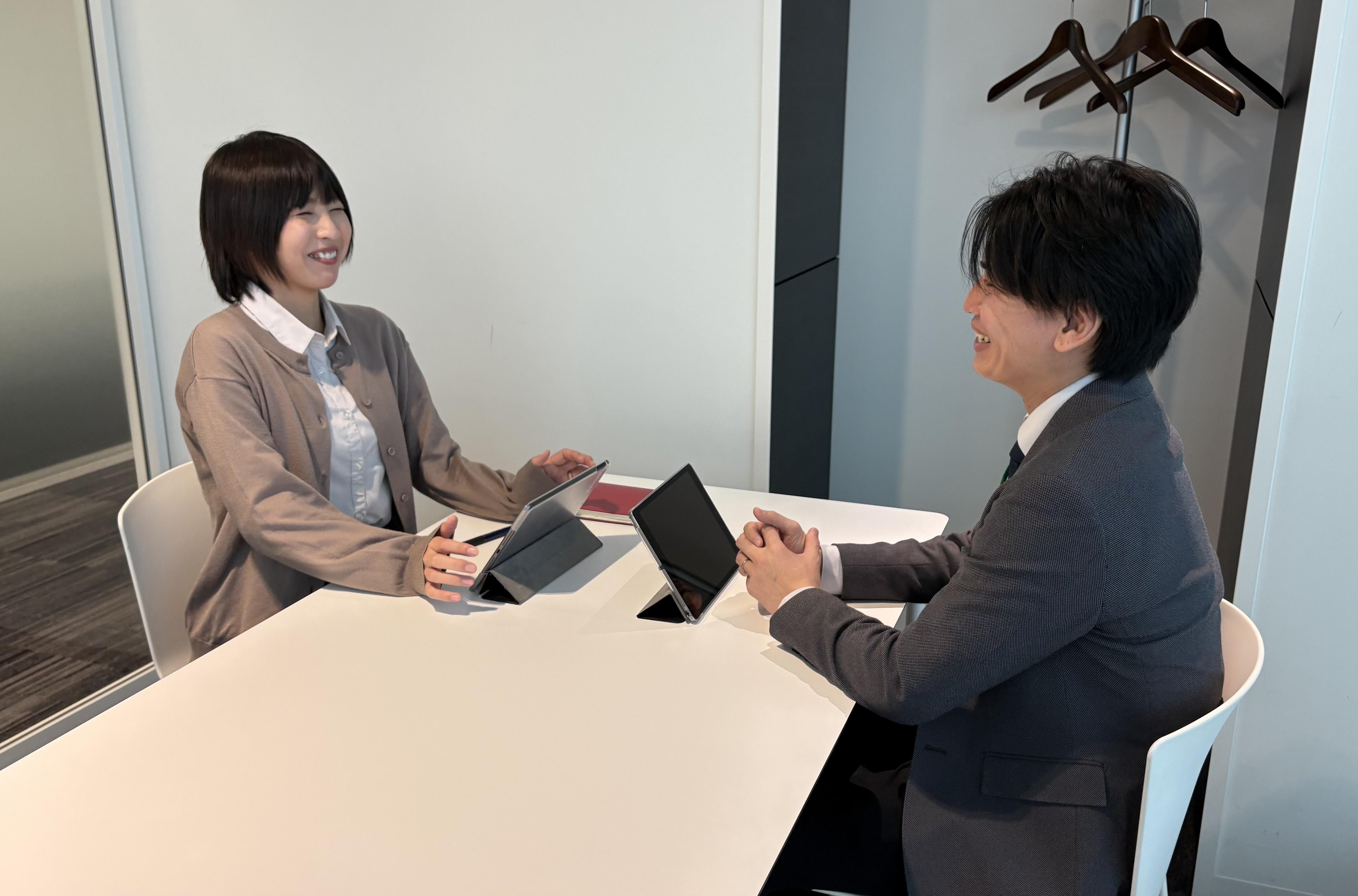 数字に追われず、お客様に丁寧に向き合えます。「今日は○件訪問する」と決めた分を早く終えたら、オフィスに戻ってのんびり同僚とおしゃべり…なんて日も多いです!