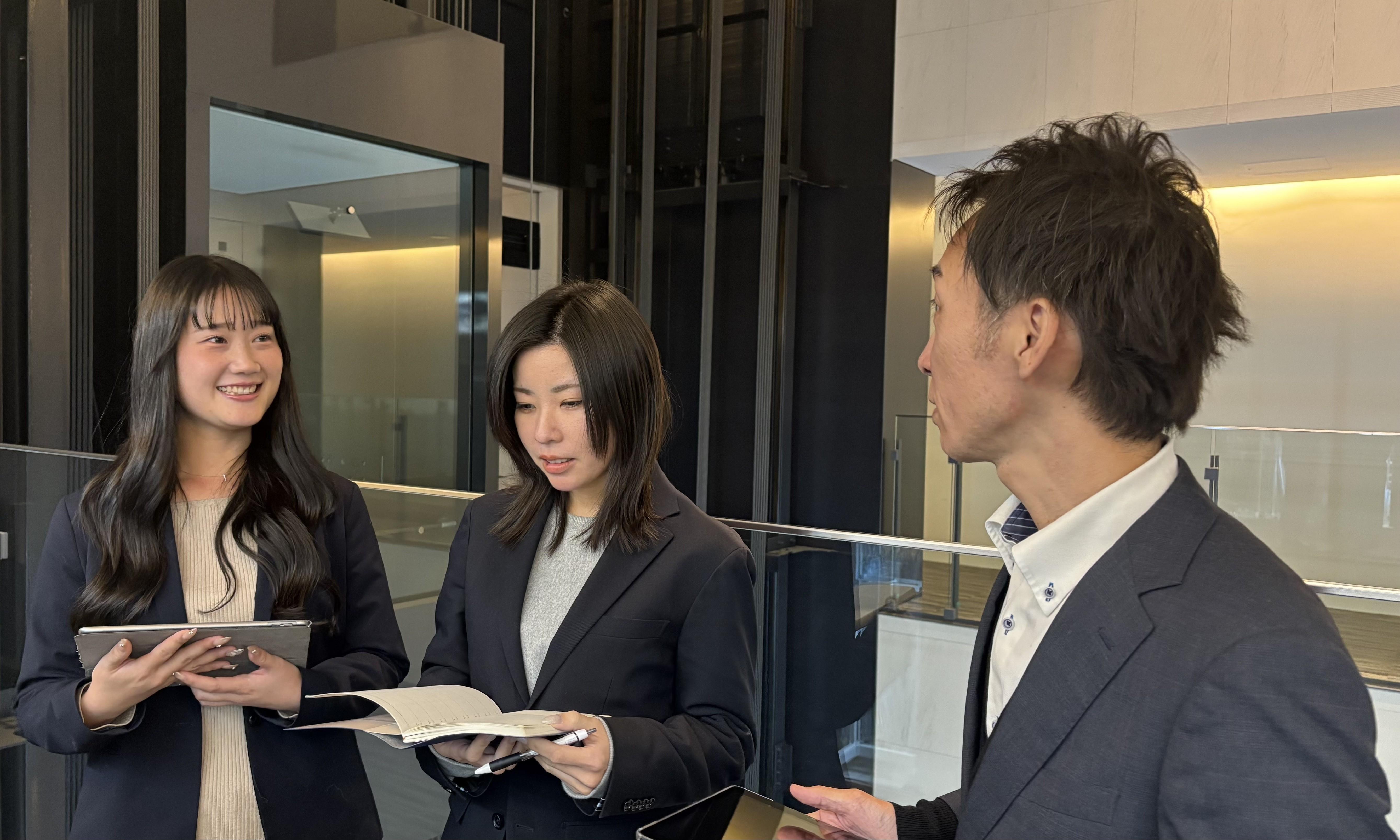 ▼1ヶ月ほどかけて知識を身に付けた後は、いよいよひとり立ちへ!もちろん、ひとり立ち後も不安がある場合は、先輩が同行やサポートをしてくれます。困ったときは遠慮なく相談してくださいね。